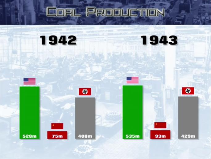 The Allies were in an enviable position in terms of energy.  Coal is am important analog for energy in World War II.  In terms of energy, the United States was the leading producer.