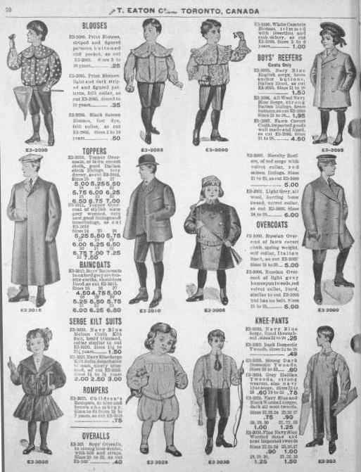 Eatons offered four different styles of blouses for boys 3-8 yers old. All had large collars, some with ruffles. This age range is useful in assessing unidentified Canadian photographs.