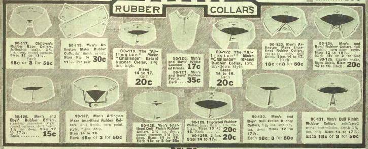 We have also seen rubber collars, but they were not very common. We have not seen them in very many catalogs. An examples is the Canadian Eaton's catalog in 1907.