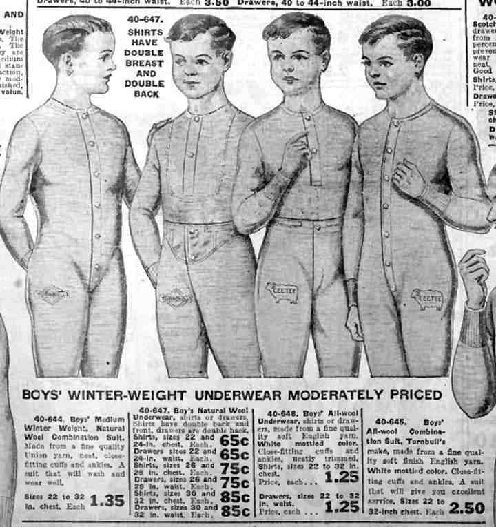 Eatons offered a selection of long underwear for boys. There were different types made in both cotton and wool.