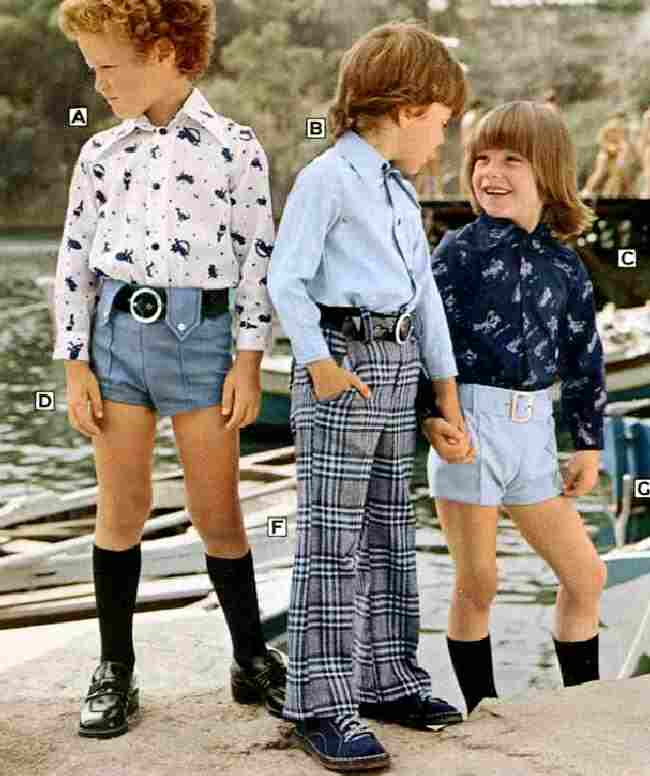 Freemans offered an extensive line of boys' clothes in its 1974 catalog. We have little information about the company at this time. Freemans offered three styles of long-sleeve coloared shirts for younger boys in both solid colors and prints. They are notable for the large collars, a popular 1970s style. They were done in sizes 4-8. There were also coordinated short and long pants with fashionable details and belts done in sizes 2/4-8. No alternative colors were offerred.