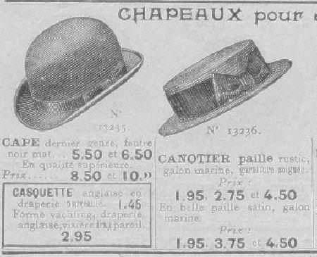 No illistration was provided, but text about "casquette" was included with the caps and hats. The ad copy reads, "Casqurette anglaise en draperie Douvealé anglaise, visière drap apreil.