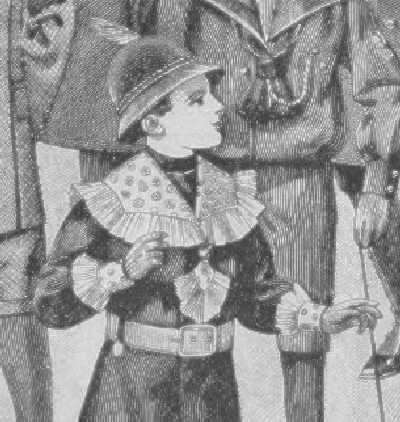Figure 2.--The Au Bon Marché illustration showed the Jean Bart hat being worn with the brim dowm. Note the feather in his hat. It is being worn with a costume baby. |