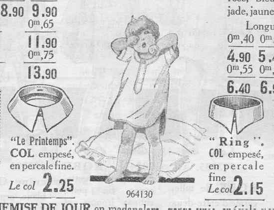 The ad copy for this detachable collar read, "'Le Printemps'. Col empesé en percale fine. Le col Fr 2.25." This would translate as