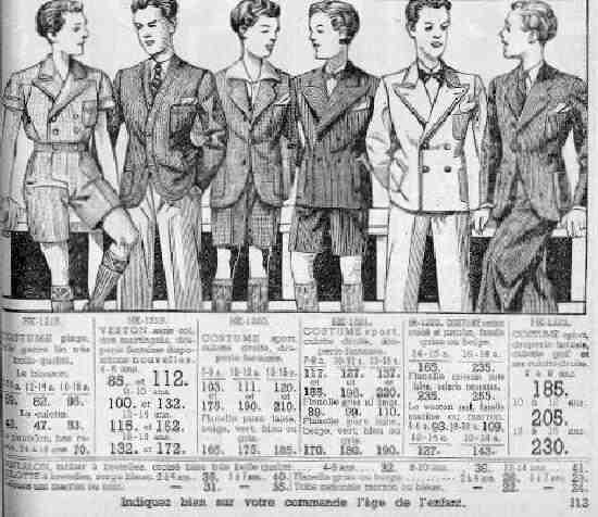 Figure 1.-- Au Bon Marché offered a wide range of suits for boys 6-18 years of age. There were both short and long pants suits as well as single and double breasted jackets. Most of the the styles appear to be the same standard styles worn by boys at the time. We also notice one suit with a short jacket. We are not sure how popular this style was. We have not noted actual photographs of boys wearing this style. |