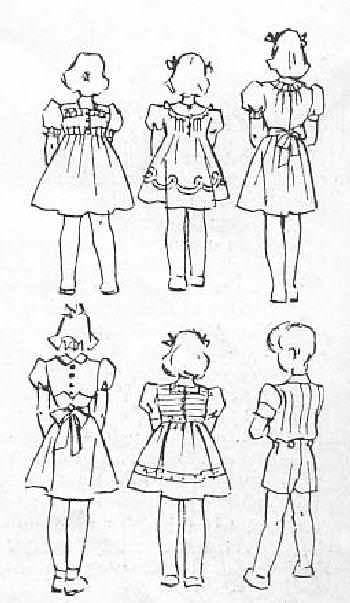 Modes et travaux in its June 1941 issue offered patterns for several Spring outfits for younger boys and girls. The age for each garment is not specified, but they appear to be for children 4-6 years of age. Most of the outfits wre dresses for girls, but there was one fancy Spring outfit for boys.