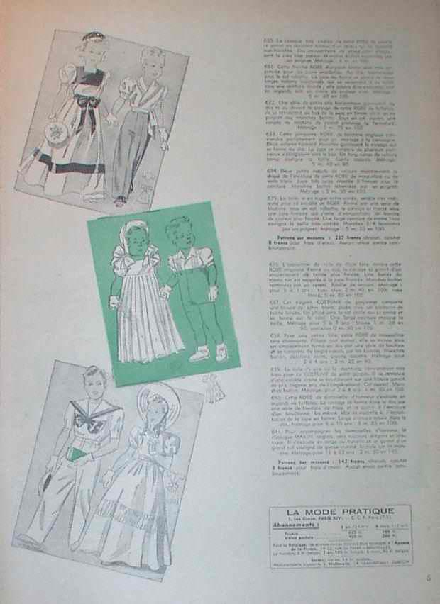 La Mode Pratique was a very popular fashion magazine in France." We are not sure, but believe it is a fashion magazine, or possibly a sewing magazine. We have few details on the publishing history of the magazine at this time. We do note that it was published during the 1920s. We do not yet know, however when it was founded or ceased publication. It appears to have had considerable information about children's clothing. We do know that it was published throughout the 1930s-40s and into the 50s.