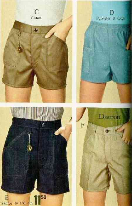 La Redoute in 1971 offered four other styles of casual play shorts. These are cut much shorter than the Bermuda shorts described above. The come in different dstyles, colors, and material. Here the catalog just shows the shorts without the accompanying clothes to go with them.