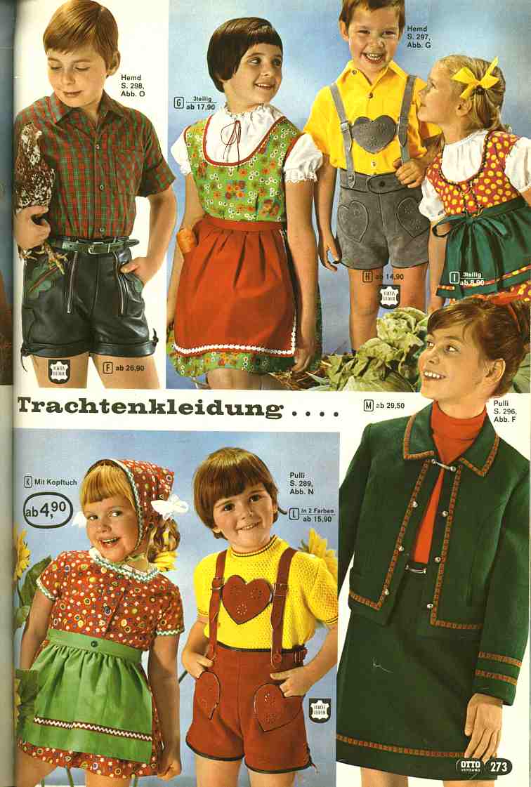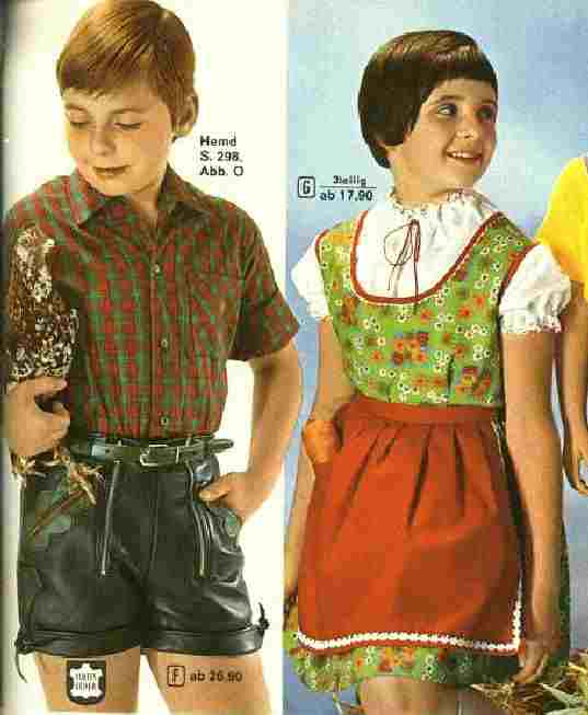 Lederhosen: Otto-versandhaus advertised some lederhosen for younger boys and even girls, although folk-styled dresses were also offered.