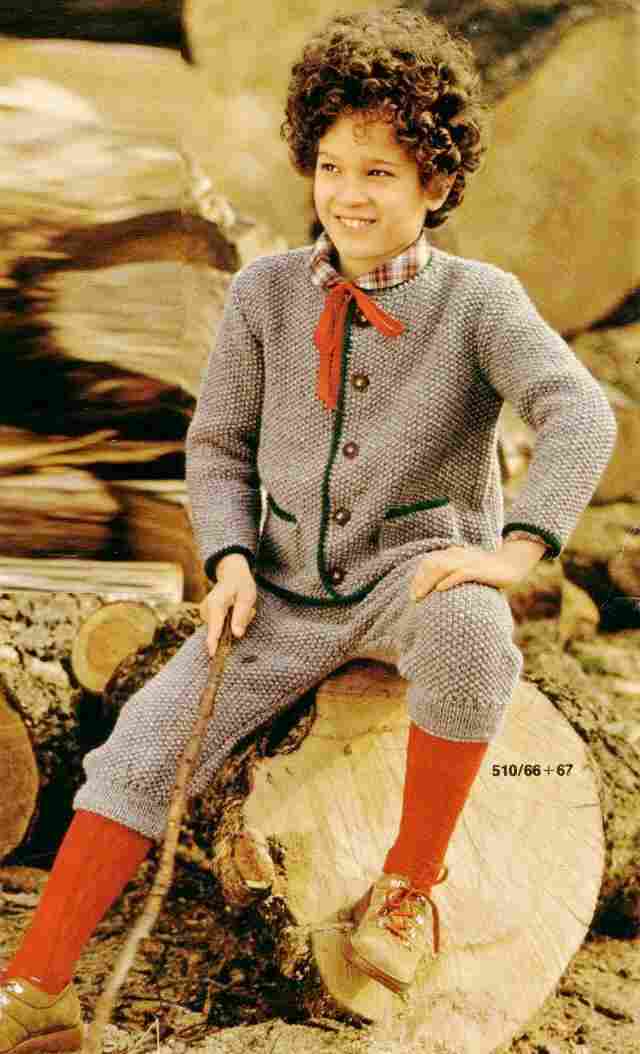 Figure 1.--A HBC reader tells us that this was a 1986 Burda pattern. Apparently Burda had a publication "Trachten" containing knitted outfits styled like German folk costume. This illustration was published in Duch for the Dutch and Flemish market. |