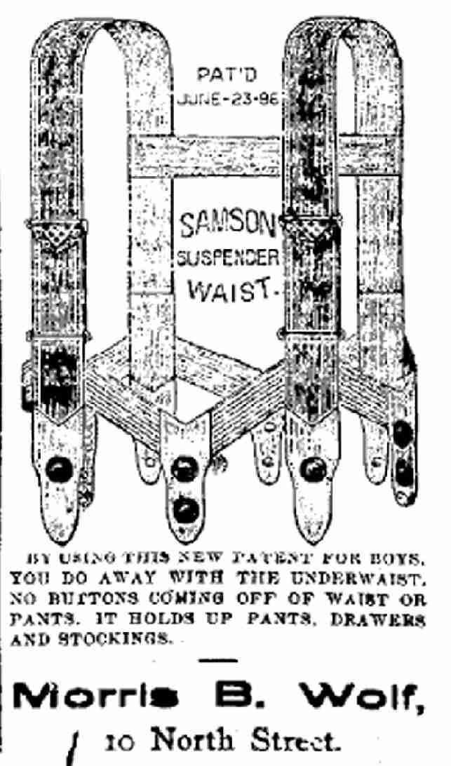 Here is the text of the ad cpy, "Sampson Suspender Waist. By Using this New Patent for Boys, You do