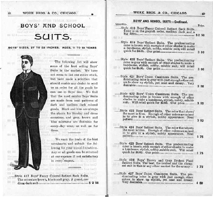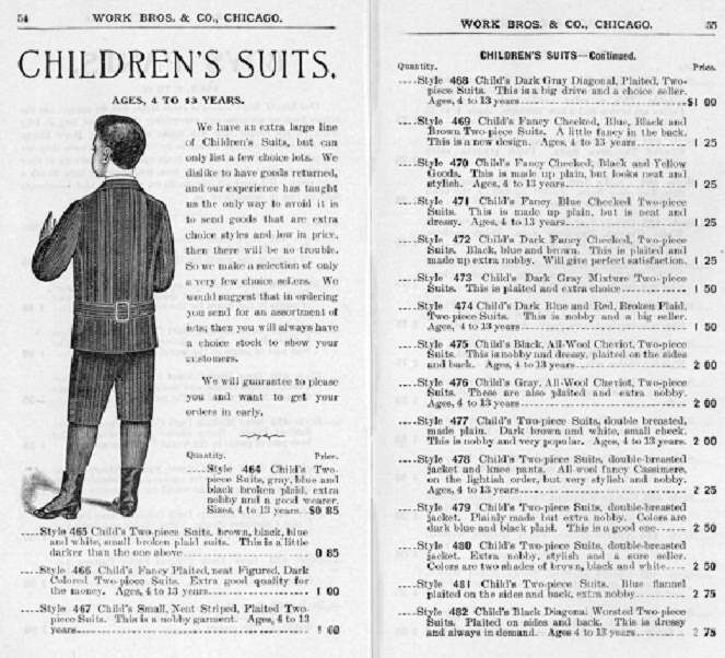 HBC has a few pages from the Work Brothers 1893 catalog had several pages devoted to suits and knee pants.
