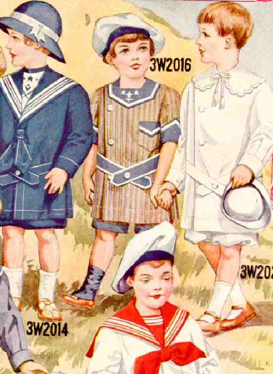 American mail order catalogs offer a very useful time line on changing fashion trends. American mail order catalogs in 1914 featured increasingly simple casual styles for younger children.