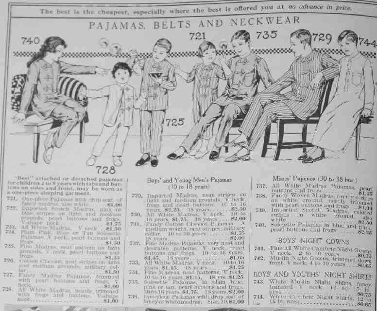 Nightshirts were the dominant sleepwear in the 19th century. This changed, we think, about the turn of the 20th century. Pajamas were the dominant sleepwear for boys by the 1910s, but nightshirts were still available. We note Best & Company, offerings in their 1916 Spring and Summer catalog. There are night shirts, night drawers, and pajamas. The nightgowns were for boys till age 10 and night shirts were for older boys. They had 1 piece pajamas till age 10 or so. There were girl and boy pajamas, but the gender differences wee not at all pronounced. The pajamas were done without collars and with oriental detailing.
