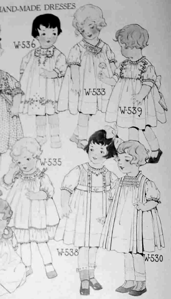 Some of the dress are clearly just for girls. The ad copy read, "GRACEFUL AS A FAIRY is this Empire frock with cording at waste and neck, its lace and fly away sash set on at the waste line just back of the embroidered sides. 1 to 3 years ... $5.25