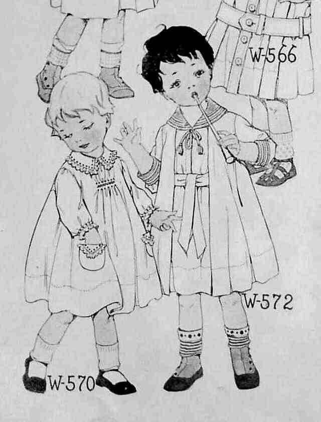 This clearly looks like a dress that would have been suitable for a boy. Best shows it bein worn with a boy model. There are no clues in the ad copy, however, except the color option. The ad copy read, "THIS RUSSIAN MODEL dress of white percale with sailor collar and cuffs of navy, pink or corn. 1 to 3 years. ... $2.75.