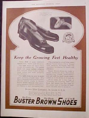 Here is a Buster Brown Shoes ad from a 1918 issue of the Saturday Evening Post. The Post was one of the most popular magazines at the time, meaning a full page ad gave Buster Brown considerable prominance. It is interesting that they chose to feature strap shoes in this ad. This and the photographic record suggests that they were still a popular style for younger boys. See for example an unidentified American boy in the 1910s. I wish it was clearer so we could read the text. But from what I can see, I think the ankle strap shoe pictured is for boys and girls --I dont see any mention of "Mary Janes", unless it is in the small print. What do you think? Strap shoes were still popular for both boys and girls in the 1920s in the US, and the Brown Shoe Co. may have wished to continue to sell them to boys. We are not sure when the term Mary Janes began to be used. We think it was the Buster Brown Shoe Company which ininiated the term in the 1920s, but we are not positive.
