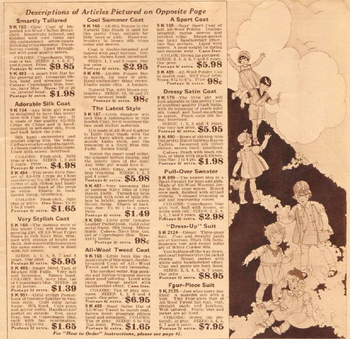 COLORS: Tan or gray mixtures. Sizes 1, 2, 3 and 4 years. Our price ..... $6.95. Postage 6¢ extra."