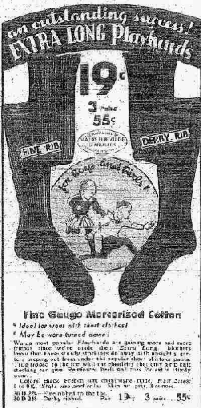 The Ward's ad copy read, "An Outstanding Success! Extra Long Playhards. 19 c. 3 Pairs 55 c. Recommended