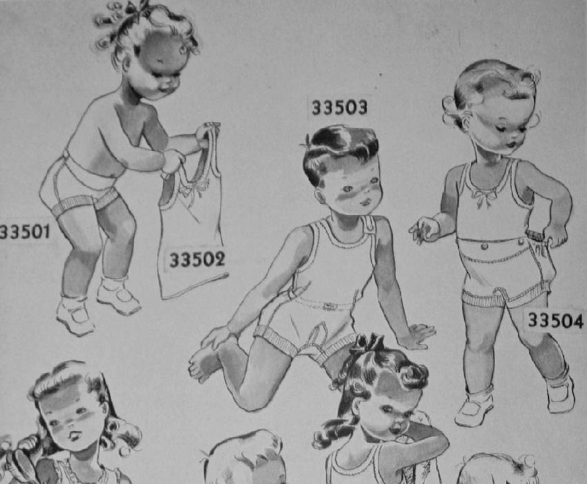 The trend toward short underwear is particularly apparent by 1940. The short underwear insured a neater, more form-fitting and classier look. Also heating arrangements by 1940 were more modern so that children in homes and classrooms didn't need to dress as warmly even in the severe