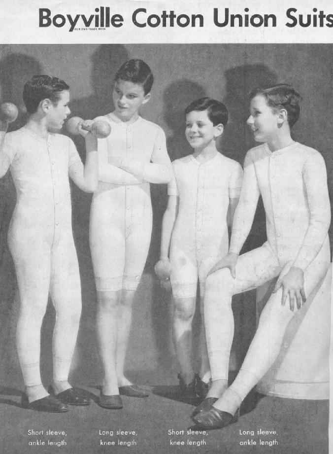 In 1942 union suits or waist union suits seem to have remained the standard underwear for boys. The shorts and shirts were still a minority style apparently. After the war ended in 1945, union suits, although still available, became less popular.