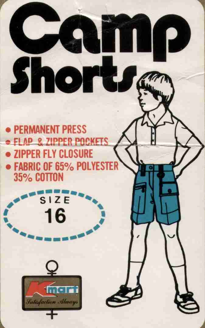 Here we see a tag from a pair of khaki camp shorts purchased at K-Mart in 1978.