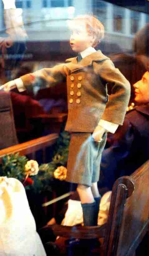 Some American department stores were known for their window displays. This was especially true of their window displays. These window displays were popular when the department stores were located down town and were useful in attracting shoppers that were on foot. With the move to the suburbs and the development of shopping malls these displays are no longer as popular or as spectacular as they once were. I can remember as a boy noteing the boys' fashions in store windows. It seemed to me at the time (late 1940s asnd early 50s) that the more upsacle stores would often show case short pants suits. Eton sduits for the younger boys and single breasted grey or black suits for the older boys. Other department stores were more likely to have long pants suits or casual clothes. Some stores were particularly well known for their Christmas displays which would include animated maniquins, elaborate model trains, and many other wonderful toys. These displays would often recreate Christmas past and the historical clothing worn during those historical eras.