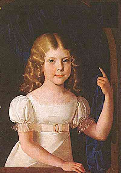 The 1830s were a transitonal era in dress design. The simple high-wasted Empire dress with baloon sleeves of the early 19th century began to go out of fashion in the 1820s. Dresses in the 1830s began to show a hint of the more pronounced hour-glass dresses of the 1850s. The 1830s were the last decade before Queen Victoria who rose to the throne in 1838. The 1830s was also the last decade of the more open early 19th century. The Victoian era of the 1840s was an incresing restrictions on women who were relegated to the home and expected to defer to her husband. This was reflectd in the increasingly restrictive fashions which became more pronounced in he 1840s as the Victorian era unfolded. As a transitiuonal era there were no clearly pronounced recognizable style associatd with the 1830s, but rather a gradual shift between the two more easily recognizable earlier and later styles and eras. We still see some dresses in the 1830s with low necklines and baloon sleeves. The baloon sleeves were an especially important style. Children still wore long dresses at the beginning of the decade. Pantalettes were commonly worn as hemlines rose to just below the knee by thge end of the decade. The Biedermeier style was important in Austria. We note girls with ringlet curls.