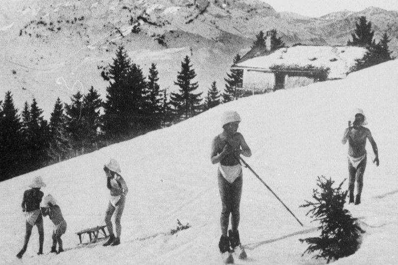 Sanatoria clothing varied among institutions and over time. The iniitial imopetus from German doctors was toi exposed patients to as much fresh air and sunshine as possible. Thus we see patients laying in beds on verandas, without any clothing or minimal clothing. Of course, people, especially children, can not lay around all day long. And we see boys wearing a varirty of brief pants-like garmnents. Some look like rompers. Others look rather like diapers. And we see some that look like brief underwear, covering the front and back with a connectig band. Some girls today wear this style of underpants. We see the romper-style pants also being worn at schools, including Swiss schools set in sites like those selected for sanatoria. We are usure why such unique, specialized garments were adopted by the sanatoria and wondered why the boys just did not wear short pants. A British doctor writes, "I was also puzzled by this. The only thought I had was that they might be suffering from renal and bladder tuberclosis, but it was not a disease I encountered when I was doing paediatrics. I only came across this variety of tuberculosis in adults, but then I was post anti-biotics. My patients would have contracted the disease in pre-antibiotic days." As far as we can tell, these destinctive pants seems to be a general approach st the sans, rather than focused on specific individuals and conditions. The only reason we can think of is that the sans pants were generally more 'airy;' as opposed to wearing short pants and underwear. But some san pants whilke short lokk to be rather thick and closed which would be les 'airy' than light-weight short pants. And in the late-19th and early-20th centuries when many sanatoiria were opened, knee pants were very long and worn with underwear. We suspect that these san pants were adopted during this period and becanme an accepted tradition even whenlighter-weiht anbd shortre pahnts became more common after World War I. And of course short pants were worn ith underwear, unlike the various types of san pants.