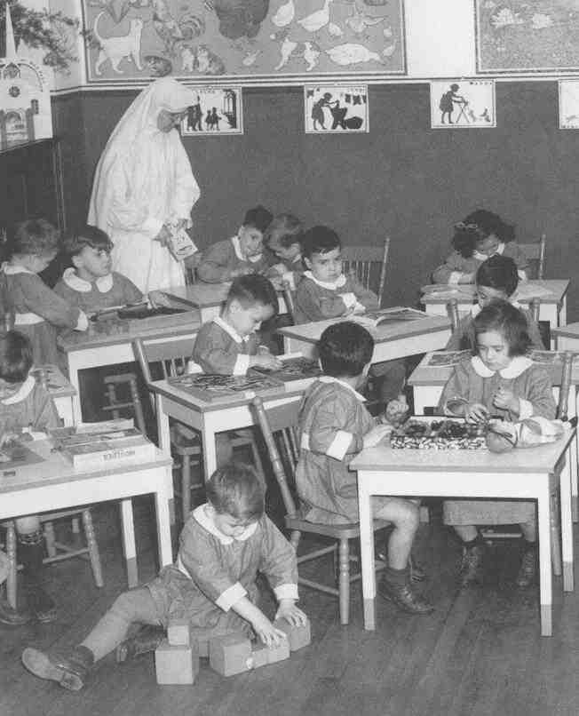 Here is a nursery for abandoned children in Montreal in 1943. I'm not sure about the name of the orphanage. The school was operated by Catholic nuns. The children, all about 5 or 6 years old, seem to be beautifully cared for. They all wear colored smocks with white collars and cuffs over either short pants or dresses. I'm not sure what color the smocks were. Almost all the children, both boys and girls, wear long brown cotton stockings with supporters and high shoes, but at least one boy wears ankle socks. I'm not sure who decided on the hosiery. One would think that at an orphanage where the children wore identical clothes that the hosiery would also be identical. The expression for unwed mothers in Quebec was originally "fille-meres," a term that carried a certain disgrace and social oppropbrium with it. In 1970 the more politically correct term became "meres celibataires". The old laws in Quebec more or less let men who got girls pregnant but didn't marry them off the hook. But now the men have to take financial responsibility for their children.