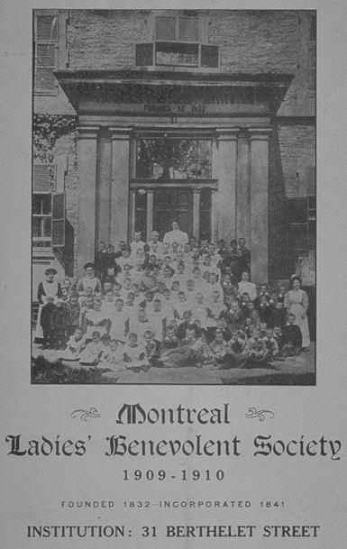 HBC has little information on Candian orphanages. We do note one Catholic orphange in Montreal where the boys were dressed in white smocks. Although the 1909-10 image is not very clear it is apparent that the younger boys wear pinafore-like white smocks. Some of the other boys may wear dark smocks with Eton collars, although this is less clear. I assumed that this was a Catholic orphanage for French-speaking boys because it was in Montreal, but note that the wording is in English. The orphanage appears to be an estanlished institution as it was dfounded in 1832, quite early for an orphanage. We do not yet, however, have any details on it. This is interesting because unlike France, French Candian boys do not seem to have commonly worn smocks. I'm not sure how boys were dressed in English Canadian orphanages. A French Canadian reader tells us that orphanages in Qu�bec mostly required unifoms. The uniform even into the 1960s included short panys and long over-the-knee stockings for the boys. The girls wore the same lonf stockings with dresses. Long stockings were worn longer in Canada thn in America, but even in Canada had gone out of style by the 1960s. One writer suggests that this was a means to characterise them as an outclass. Any orphan trying to run away from the orphanage could easily be recognized and sent back.
