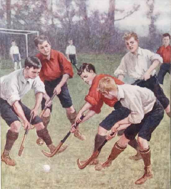Figure 1.--Hockey was a major sport at many public schools. This imsge was from a 1908 issue of "Chatterbox" and the uniforms worn are contemprary. I am not sure who the illustrator was. |