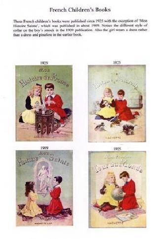 We do not yet have enough information on types of French children's books to understand chronological trends. We have begun to collect information and hope to better understnd trends as HBC develops. We note activity books in the 1920s. We see some popular series in the 1950s-60s. Hopefully our French readers will be able to provide more information here. What we want to understand is how types of children's literature in France changed over time. And of course these books also provide us alook at children's fashions over time.