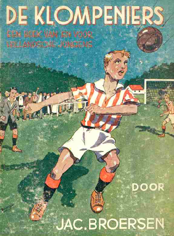 A popular theme for boys' books in the Netherlands, as is the case in may countries, is sports. Unlike England, the Dutch sports books are not almost entirely a part of school stories. Most commonly the Dutch sports stories deal with football (soccer). One Dutch book even mixed together wooden shoes and soccer--a very Dutch story (figure 1). Adventure stories were another popular theme for boys' books. Other themes include animals, fantasy stories, history tales, mysteries, and a variety of other topics.