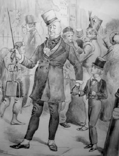 Dickens published David Copperfield in 1849. Thus the clothing styles can be assumed to have been those of the 1840s. As David aged in the book, clothing of the 1830s may be correctly used for David as a boy. Thus David can be correctly shown wearing a skelrton suit. They were, however, going out of style in the 1830s, at least by the late-30s. Other clothing items like tunics might be accuate, at least for well-to-do boys going to school. Boys of all ages wore long pants, even fashionably dressed boys from affluent familirs. Headwear might be peaked caps with military styling. Boys also wore suits with vests. The jackets were cut short. Often the jackets did not match the pants. And vests were contrasting. The most definitive source for the proper fashions would of course be the illustrations in the original published version.