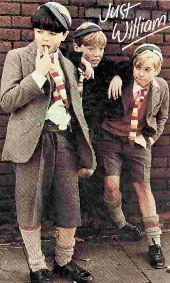 William has passed out of style in Modern Britain. To put it mildly, William is not exactly PC. William is the quintessential middle-class British boy, just as Billy Bunter represents the upper-class schoolboy role. William represents the genteel English home-counties, conservative, ideal world that perhaps never was. Much like Norman Rockwell's portrayals of America. William's xenephobia and sexism is perhaps not the perfect role model for 1990s Britons. Yet there is something about William that cannot be easily dismissed. The same kind of criticisms are leveled at Tom Sawyer and Huckleberry Finn. William's sexist dismisal of girls in general and Violet Elizabeth Bott in particular does not mean the author agrees. (The author in fact is a lady.) It means that William and boys then and now do think that way about girls. William also in a very real way preserves a slice of Britain that, if it did not precisely exist, did exist in the minds of many Britons. And it did preserve a beautiful glimpse of how a generation of British boys really did dress.