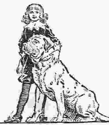 Figure 2.--Cedric is pictured here with the Earl's dog, Dougal. Notice the cuels and above the knees knickers. Notice the star-point design of the lace collar. |