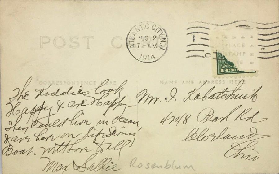 This divided-back era began on March 1, 1907. The divided back made it possible for both the address and the message to be on the back of the card. This prevented the face of the card from being written on and proved to be a great boon for collectors. Normally the view colors or images filled the entire card with no white border. The primary publisher was AZO. AZO and other companies put stamp boxes on the back of the cards. The can be used to date the cards. People could have their family snapshots printed with post card backs. Studios also printed portraits wth postcard backs. As Countries like England, France, and Germany had more advanced postcard industries, many cards were imported. Thus many of the cards used in America during this period were imported. British and Germans cards were especially popular in America and were usually the highest quality cards. The German made card here is a good example (figure 1). Rafael Tuck and Sons was especially well known and began exporting postcards to the United States beginning in 1899. With the onset of World War I (1914-18), German cards were no longer available in America because of the British naval blockade. British cards also decreased in availability as Britain focused its economy on the War. This disription gave a boost to domestic American companies. Divided back cards were the standard in the United States until the 'white border' cards appeared.