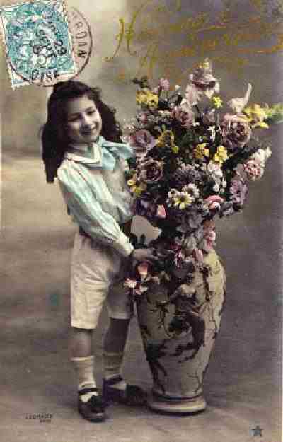 The question arises as to who the children in the postcards are. Here we do not have a great deal of information. A French reader tells us that he and his brother in the late 1940s were used as models for a few shoots. He indicates that often the parents of the children did not receive monetary compensation, but rather copies of the portraits taken. We do not know how common this was. We do note in the eraly 20th century that some children repeatedly appear in posrcards. This is not only in a series shot on the sdame theme, but in postcards shot on different occassions and for different companies. These children do appear to have been professiional models. This is important because to the extent that professional models are used, it is likely that the hair styles and clothing would have been dome specially, rather like models in fashion magazines and thus not a potentially accurate depiction of comtemprary clothing and hair styles.