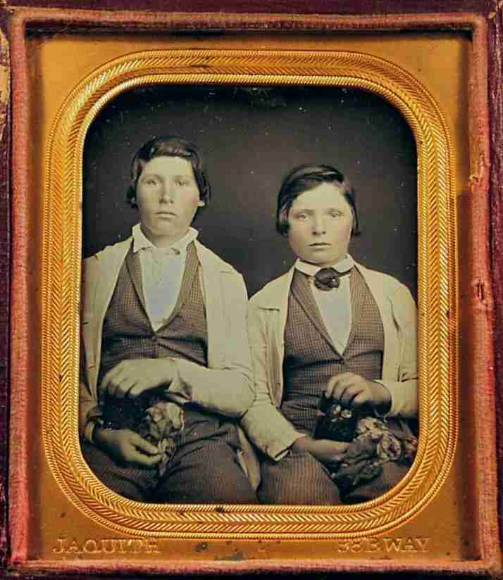 The employees at the studio would be likely almost men and boys. There may have been some female Daguerreotists, but my guess is that this was extremely rare. The Daugerreotypist might have an assistant, nore in a big city studio to help with the posing and chemical processing. Other employees would be needed to fill other requirements such as preparing the right sized polished plates. Others were needed to prepare the decorated, prolished cases. Some Daguerreotist may have employed family members. This probably often included sons, nut rarely daughters. Boys may have been employed as aprentices, but formal contracts were less common by the mid-19th century as had been the case in the 18th century. Boys would have been employed to sweep up, help build and decorates the cases, and polish plates. As they got older they might have been entrusted with the chemical processing as part of their education learning the trade.