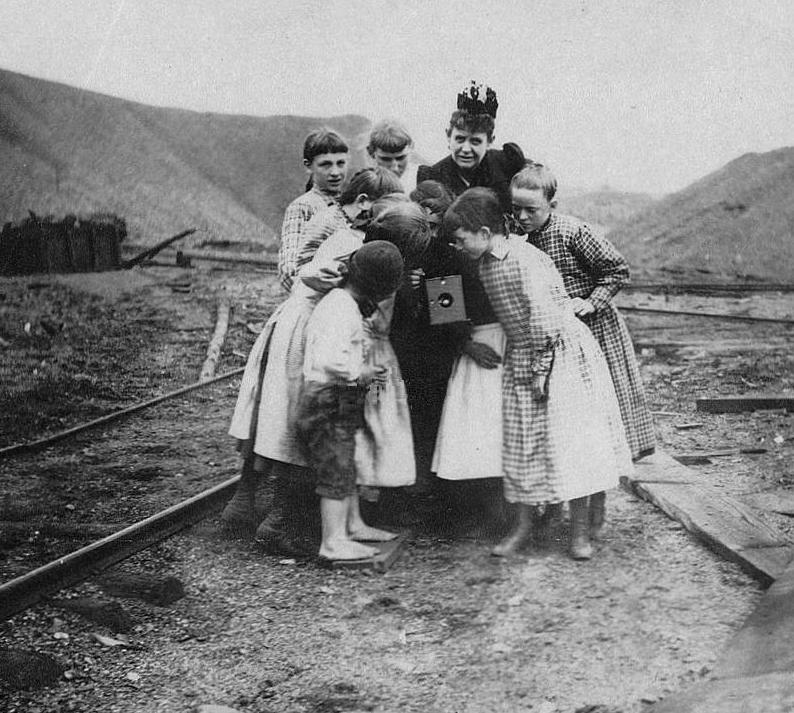 The box camera was a major innovation. Until the box camera, photography was so complicated and expensive that only the most committed amateurs could persue photography. George Eastman in 1889 introduced the Kodak box camera bring photography within reach of a much larger market--but it was still relatively expensive compared to what earlier cameras cost. We begin to see affluent people taking snap shots at this time. Even children could operate a box camera. We see, for example, boys at exclusive private schools with box cameras in the 1890s. The Kodak box was the first box camera to become widely adopted by the public. The design was soon copied by competitors, but it was the archetype for the cameras that made the family snapshot possible for middle-class Americans. The secret to the box camera was flexible roll film which made the cameras light weight and portabl. Heavy tripods were no longer necessary. And doing away with heavy, fragile glass photographic plates freed the photographer to go about anywhere.
