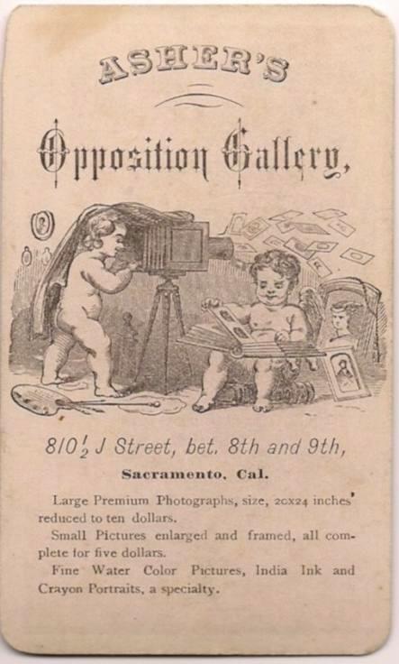 Some studios in the 1860s often offerd albumen prints and Daguerrotypes or Ambrotypes, but soon they were primarily albumen prunts. The shift from these formats to albumen prunts was very rapid--a textbook example of response of an industry to consumer demand. Albumen studios in contrast to the Dag and Ambro studios began offering a wide range of services. The CDV which appeared in Europe during the late-1850s and in America during the very early-1860s. The CDV was followed by the cabinet card (1866). The cabinet card is smply aarger albumen print on larger card stock. Big city studios also offered clients a much greater choice of backdrops. It was the services offered that really destinguised big city studios. The sticker here is a good example of the range of services offered by a Philadelphia studio (figure 1). They could copy Daguerrotypes or other old photograpgs. This was helpful because unlike albumen prints (CDVs and cabinent cards), there was no negative as part of the Daguerrotype process. Ambrotypes were more difficult to copy. Albumen prints could be made in a range of sizes. CDVs and cabinet cards were done in standard sizes, in part so they would fit into albums. Clients could, however, order enlargements in various sizes. Color could be added through tinting or by painting over the print (water color, oil, pastels, or ink). There were many other types of portraits such as ivorytypes or opalotype.