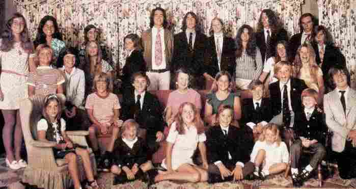 ![]() Figure 1.--The Kennedy Grandkids were photographed with their grandmother in 1972. Note only one boy wears a short pants suit, although another wears play shorts. One boy wears double strap sandals with white socks. Note the long hair popular in the 1970s. |