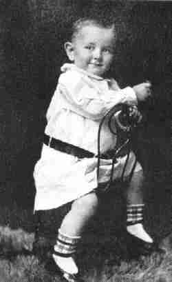 ![]() Figure 1.--Lyndon was photographed at 18 months in 1910. Although the custom was waining, many young boys still wore dresses in the 1910s. |