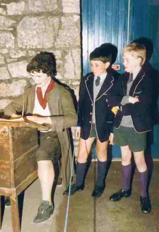 Figure 1.--The Scottish boys find a display of a 18th century school interesting. |