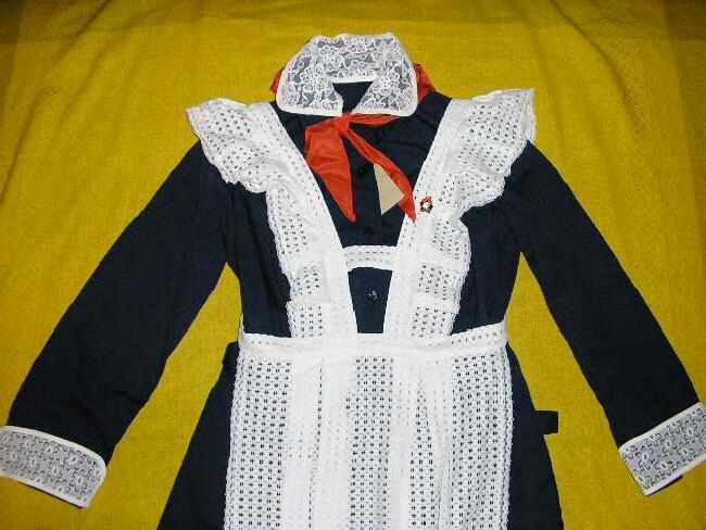 This appears to have been a vintage uniform worn in the early to mid-1980s. We think it was essentially the same as the uniform worn in the 1970s. As the Soviet Union began unraveling in the late 1980s, schools became less strict about wearing the required uniforms.