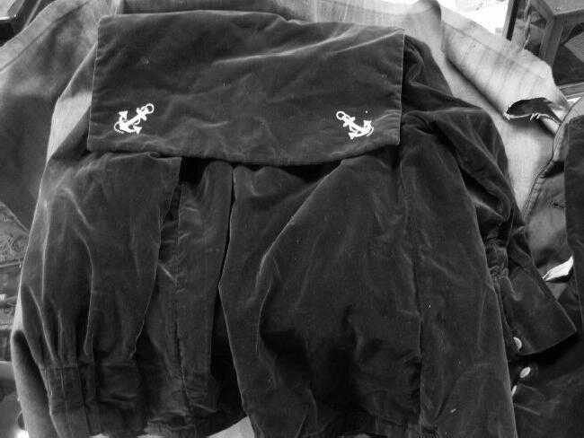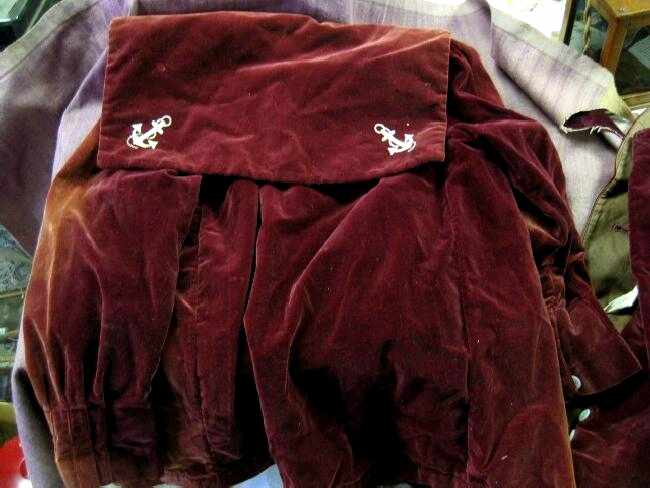 Burgundany was a color worn by boys and girls, often for winter garments. We note burgundy velvet. Fauntleroy suits. Here we see a bugundy velvet sailor suit (figure 1).