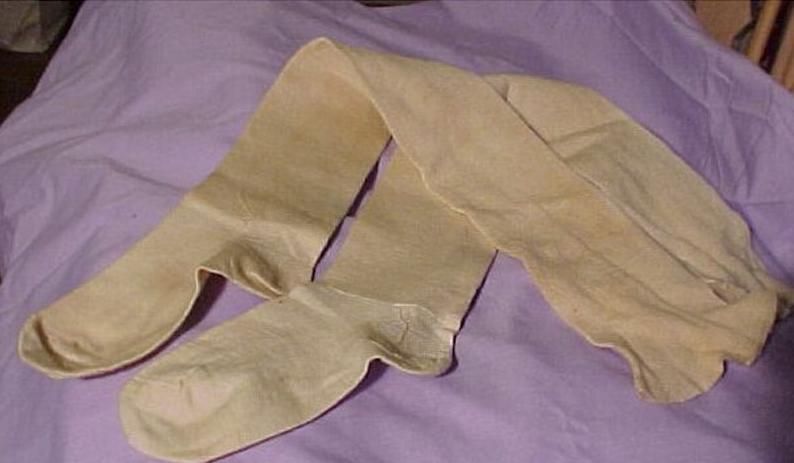 Long stockings were worn in both the 19th and 20th century, but went out if fashion during the 1940-60s. The precise chronology depended on the individual country. As they are relatively bmodern, we have managed to find quite a few examples of vintage long stockings. Most are from America and Germany where long stockings were particularly popular. As the example we have found are fairlt recent from the 1920s-40s, many are light brown shades. Light shades like tan and beige were not worn in the 19th century, but were particularly popular after World War I. These vintages stockings are helpful in showing both the length and colors hue variations. This is information that is difficult to determine from the photographic record. Stockings were worn unlike socks so you can not see the tops. And the black-and-white photographic record provides few clues as to color. While we can often identify tan stockings in photographs, there are many shades of tans/beige. The range of hues can only be seen from vintage clothing. Catalogs list dizzying variety of colors, but it is impossible to know just what hues weee represented by the different color names.