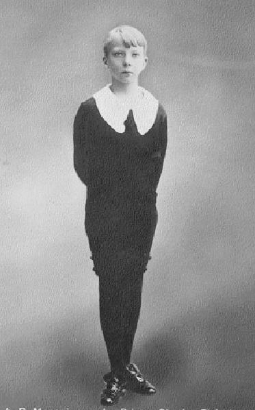 Figure 1.--Charles is seen here in what looks to be a black Fauntleroy suit with a plain, but very large collar. We had thought that he was wearing knicker pantschere, but on closer examonation theybappear to be tight-fitting kneepants. |
