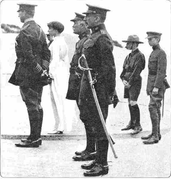 Figure 1.--The King and Queen are seen here with Prince Leopold and Prince Charles. The boys wear uniforms rather than their fancy pre-war outfits. Prince Leopold wears an officer's field uniform while Charles wears a Boy Scout uniform. I'm not sure why the two are dressed differently. The boys would have been about 15 and 13 years old in 1916. |
